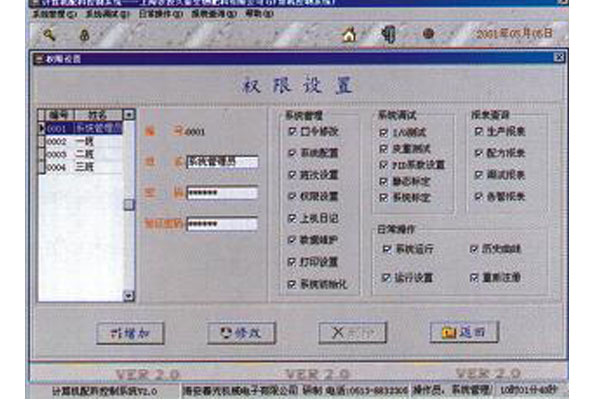 - 軟件系統可對系統管理員、操作工的操作權限進行設置。
